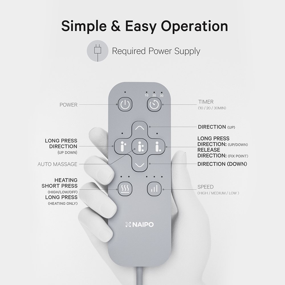 CONTROL THE SETTINGS CONVENIENTLY – Access all the massage functions by using the buttons on the controller, and find the setting perfectly suited for your needs. Set your favorite massage mode with simple operation.